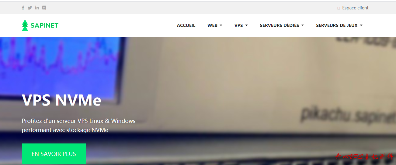 Sapinet,法国商家,应该是2019年成立,提供虚拟主机、VPS、独立服务器等,VPS位于德国,基于KVM,CPU强劲,硬盘是NVMe,且空间大,有免费的DDoS防护,性价比不错。