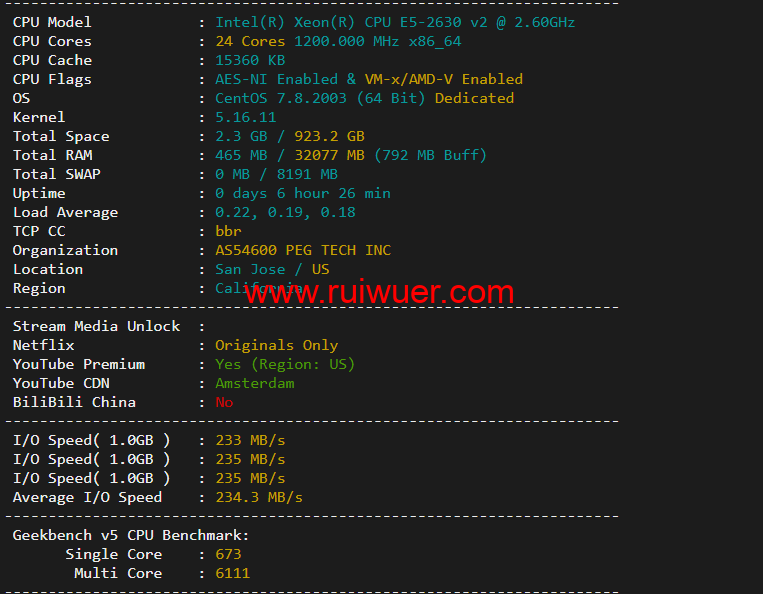 下面为大家测评一下raksmart美国洛杉矶机房独立服务器,cn2 30M线路,了解一下机器性能、流媒体解锁等,给大家分享下测评数据,仅供参考!