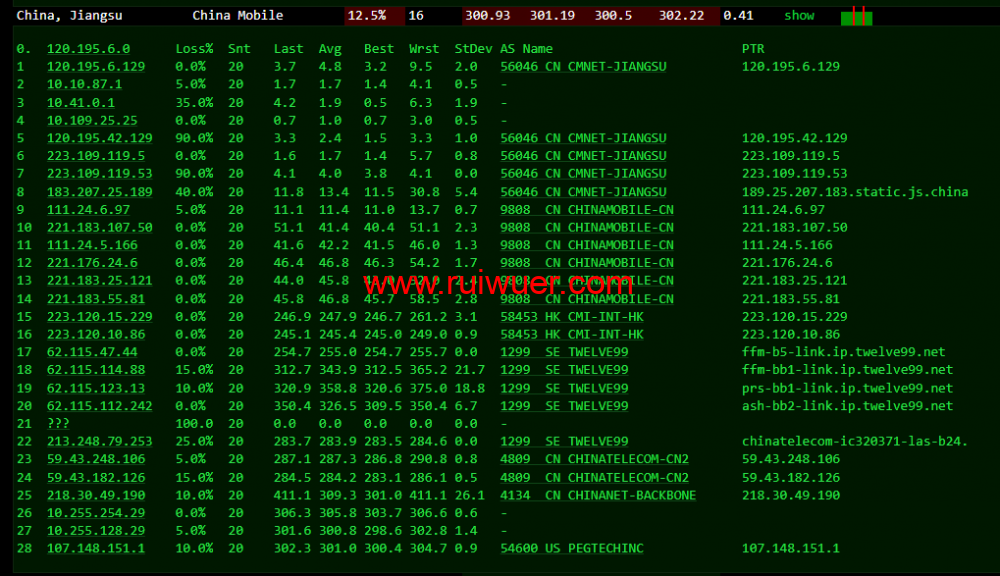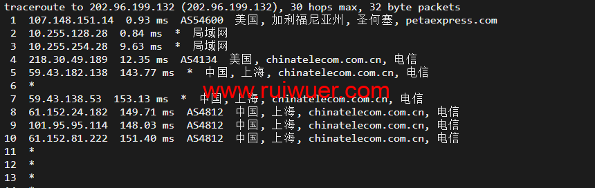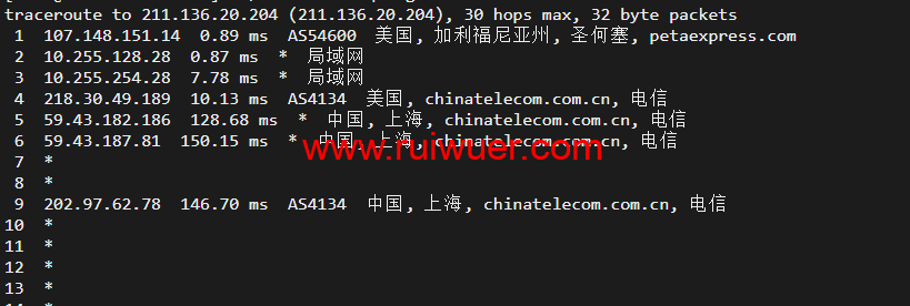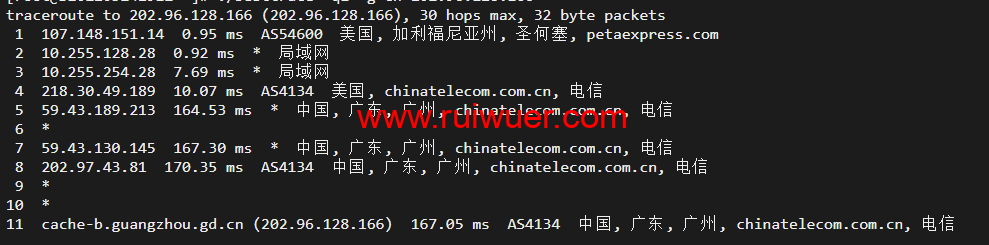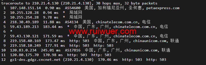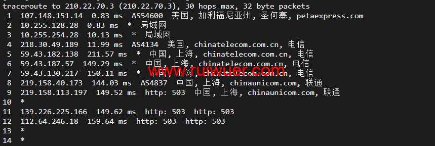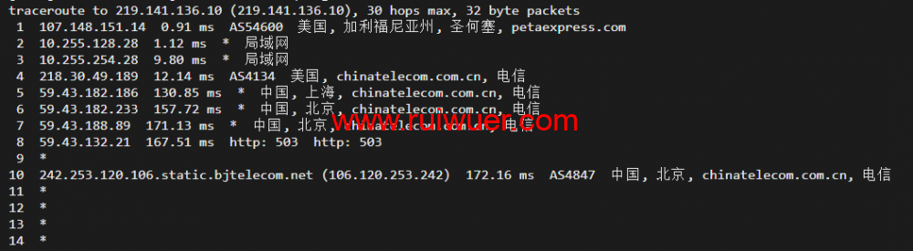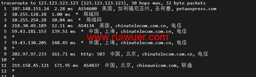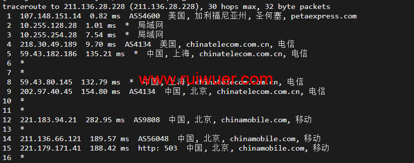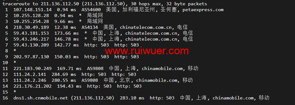 电信、联通去程走cn2,移动走香港绕路回国在走cn2到美