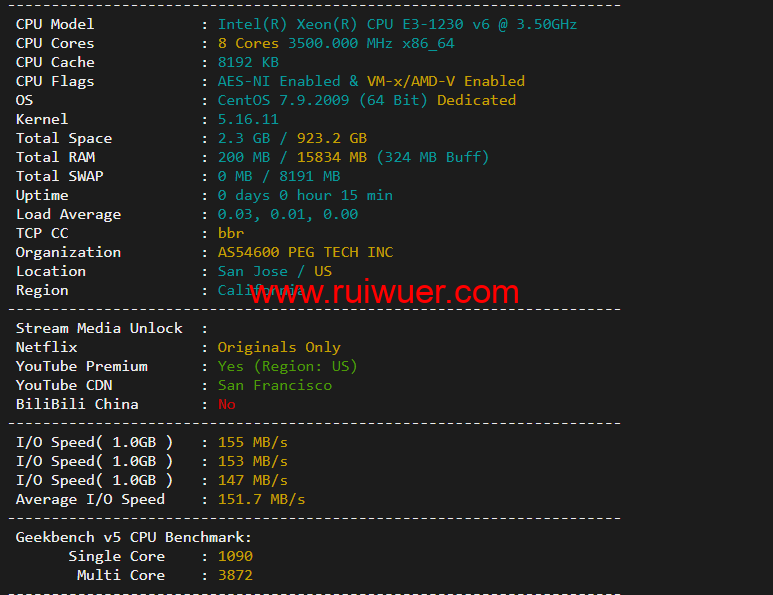 下面为大家测评一下raksmart美国圣何塞(硅谷)机房独立服务器,cn2 30M线路,了解一下机器性能、流媒体解锁等,给大家分享下测评数据,仅供参考!