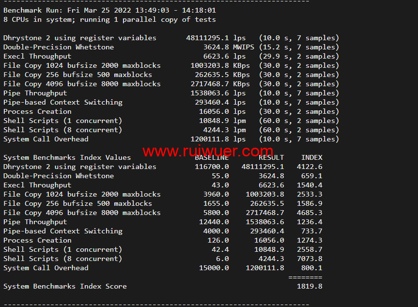Unix bench Mark跑分