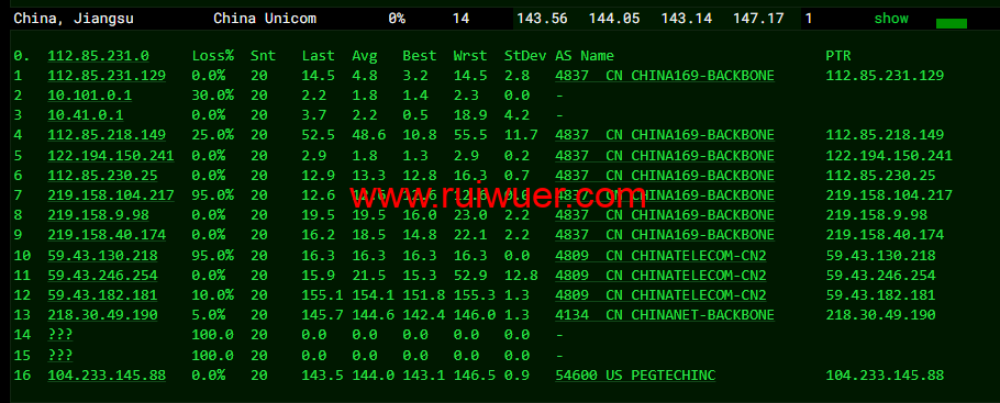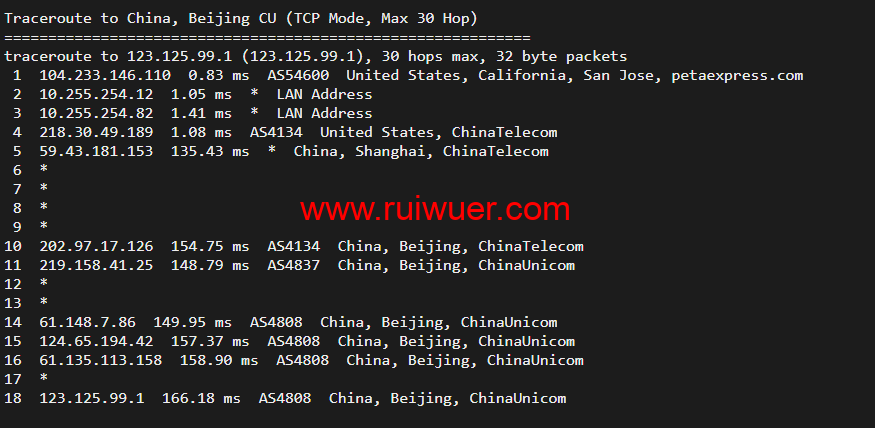 回程,到国内联通,走cn2回国
