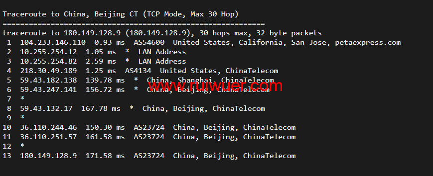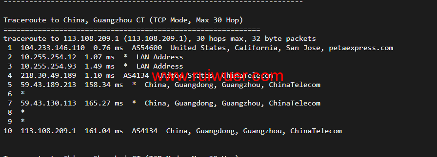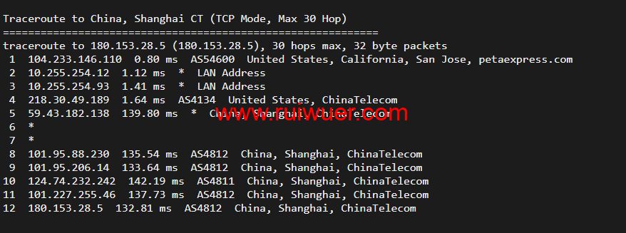 回程,到国内电信,走cn2回国