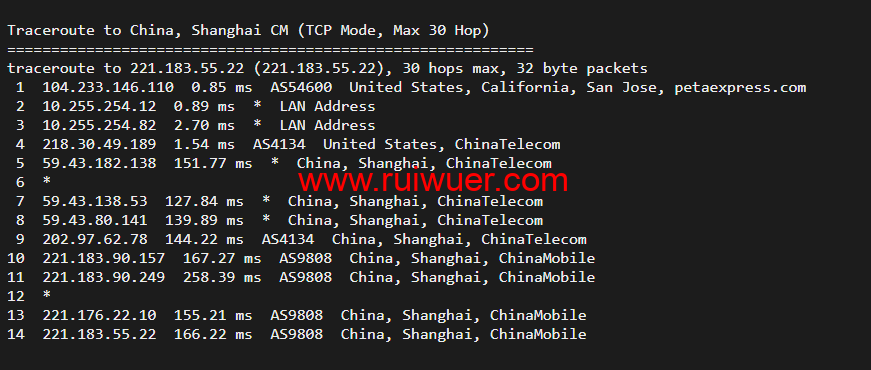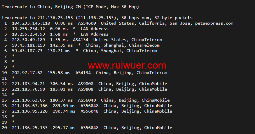 回程,到国内移动,走cn2回国