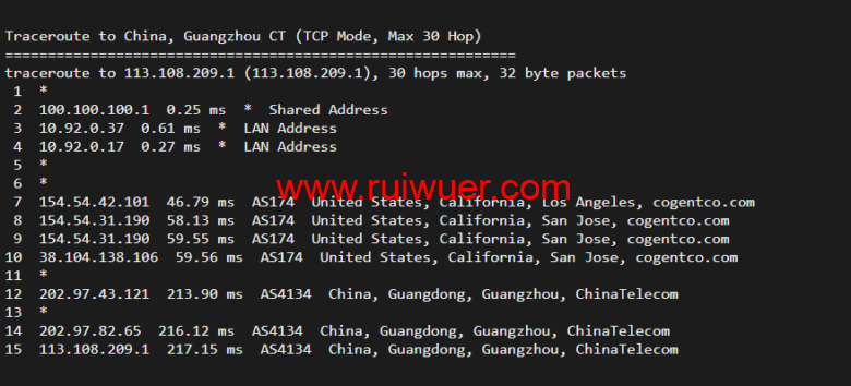 回程,到国内电信,走cogentco回国