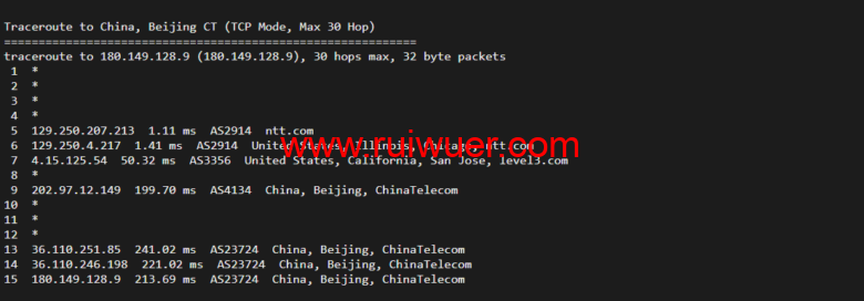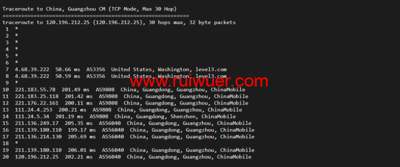 回程,到国内移动,走cogentco回国
