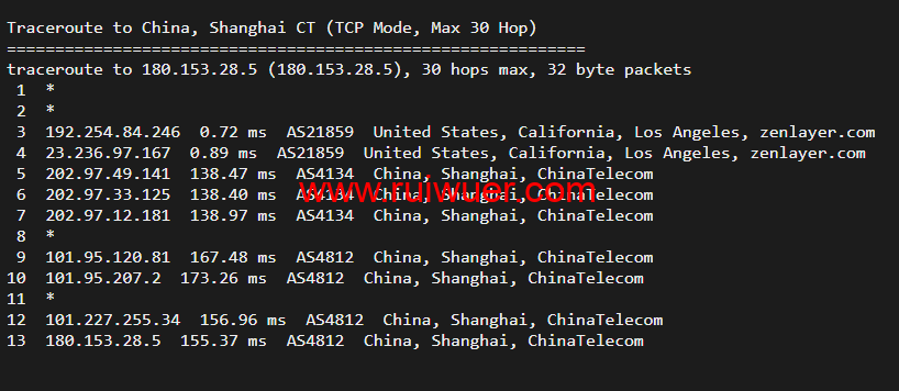 搬瓦工 DC8 ZNET 机房,编号为 USCA_8,位于美国洛杉矶。搬瓦工 DC8 ZNET 机房以前是非常受欢迎的一个机房,因为以前是接入 CN2 GT 线路的,然后线路质量比较好,而且价格相对来说比较便宜。不过目前已经取消接入 CN2 GT 了,但是由于电信线路扩容了,所以线路质量反而还更不错了,有些时候有些事情就是这么魔幻。