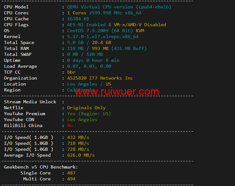 本文会为大家介绍搬瓦工DC4 MCOM(USCA_4)美国洛杉矶 Multacom 机房直连线路、方案整理、机器性能、流媒体解锁等,希望能对大家选择搬瓦工方案时有所帮助。