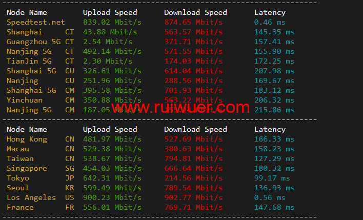 speedtest.net国内国外上行下行测试