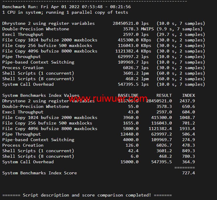 Unix bench Mark跑分