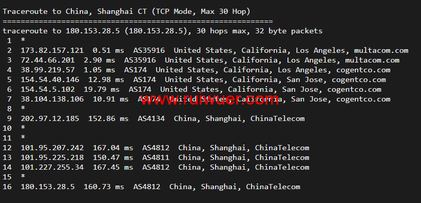 搬瓦工 DC4 MCOM 机房,后台编号为 USCA_4,是位于美国洛杉矶的又一个机房。MCOM 全称为 Multacom,缩写就是 MCOM。搬瓦工 DC4 MCOM 机房算不上一个搬瓦工的主流机房,但是也算不上特别冷门,因为还是有不少商家以 MCOM 机房为主推机房的。目前搬瓦工 DC4 MCOM 机房也是直连线路,不过是普通直连,没有任何优化在里面,所以只能算普普通通的一个机房。