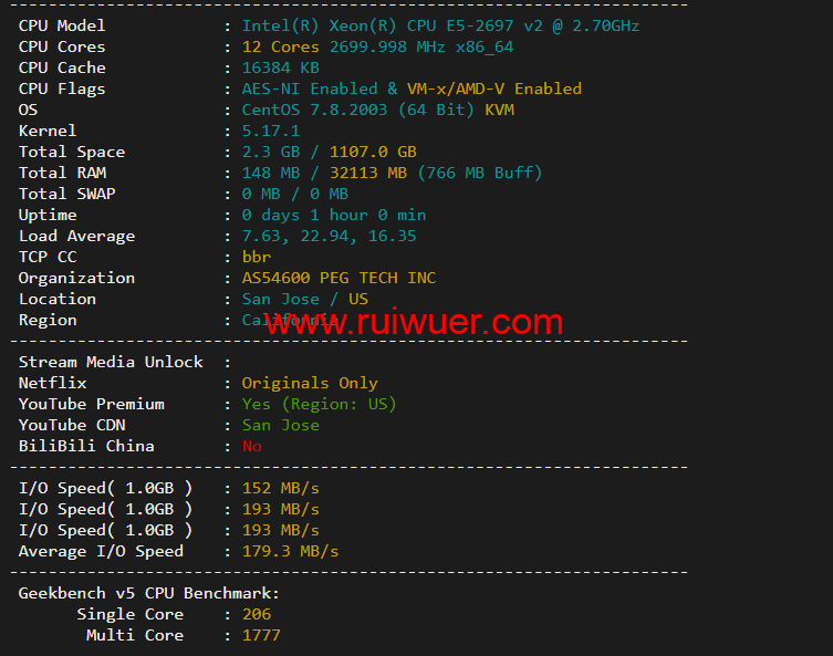 raksmart目前裸机云产品推出7折优惠,有需要的可以围观一下,下面为大家测评一下raksmart美国圣何塞(硅谷)机房裸机云,精品网线路,了解一下机器性能、流媒体解锁等