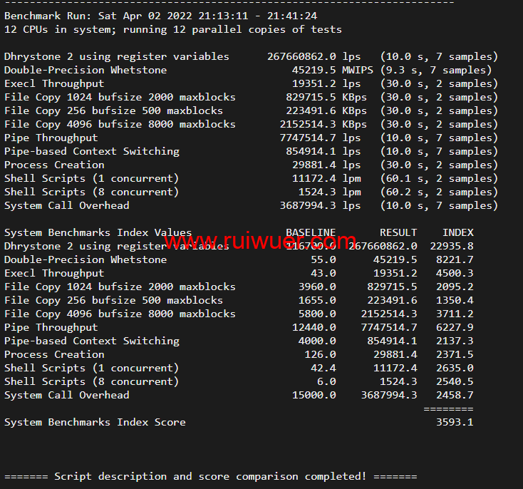 Unix bench Mark跑分