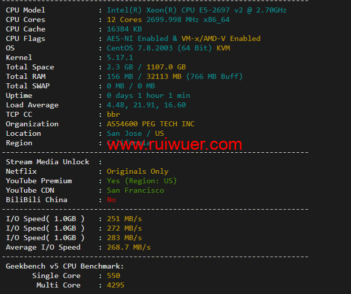 raksmart目前裸机云产品推出7折优惠,有需要的可以围观一下,下面为大家测评一下raksmart美国圣何塞(硅谷)机房裸机云,CN2线路,了解一下机器性能、流媒体解锁等