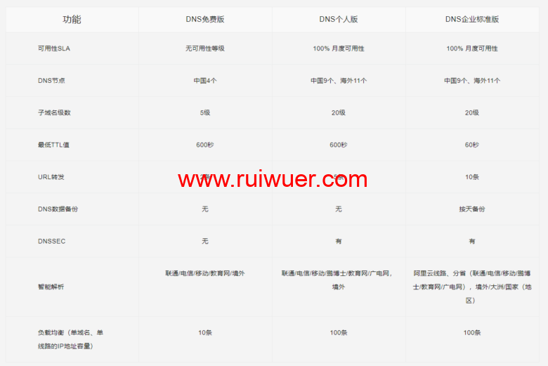 付费版DNS节点更多,提供全球20个DNS节点;免费版只有中国4个节点。