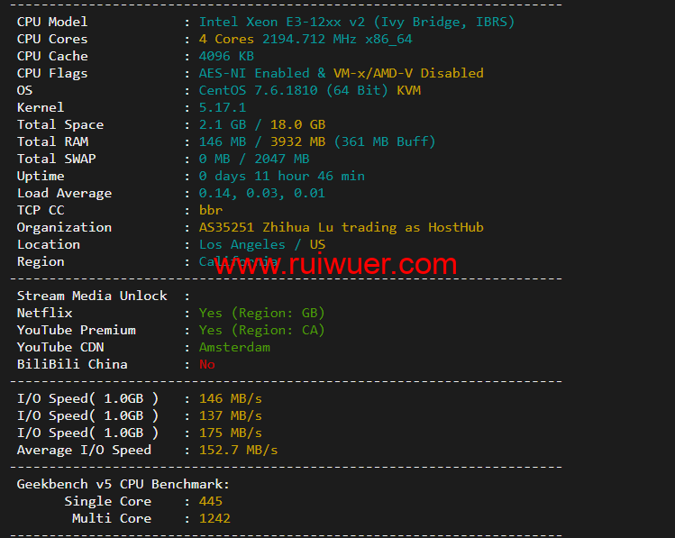 稳爱云最近新上美国美国cera大宽带,联通AS4837线路,1核/1G内存/20G硬盘/500G流量/200M带宽,月付30元起。有需要的可以围观一下。