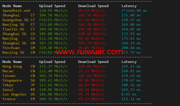 speedtest.net国内国外上行下行测试