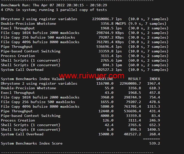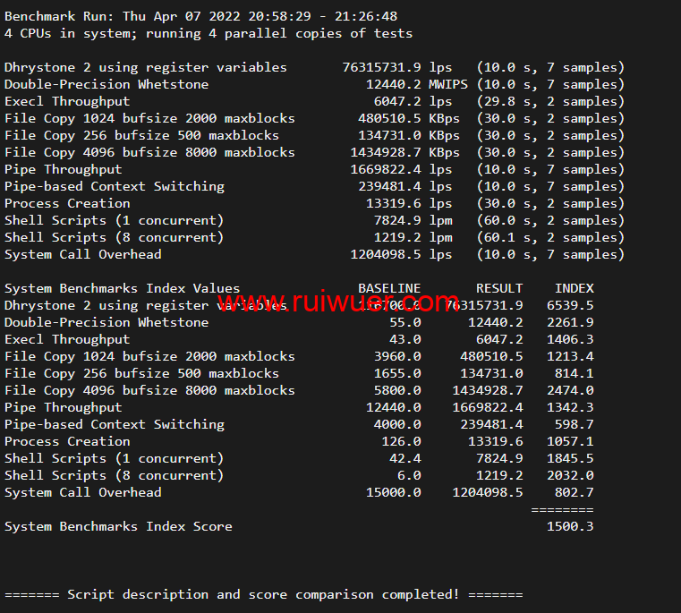 Unix bench Mark跑分