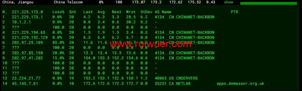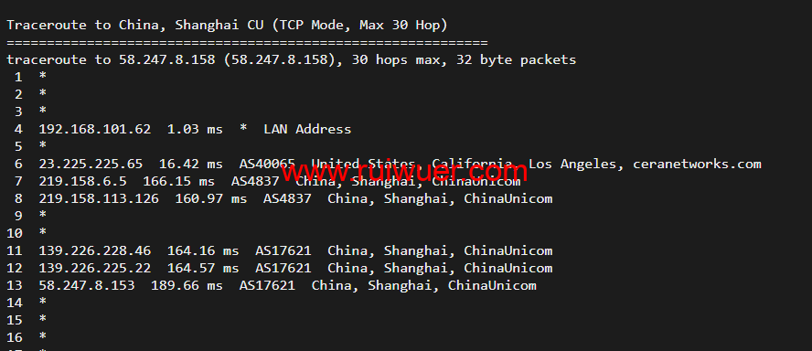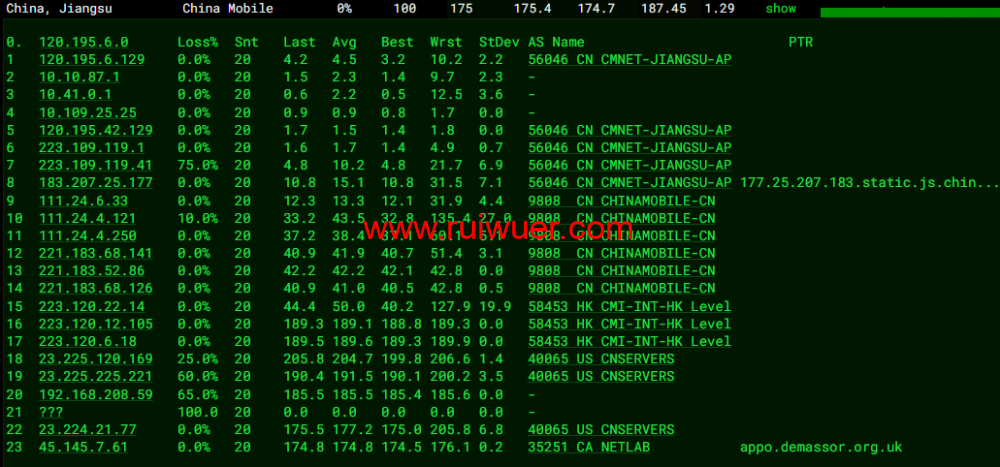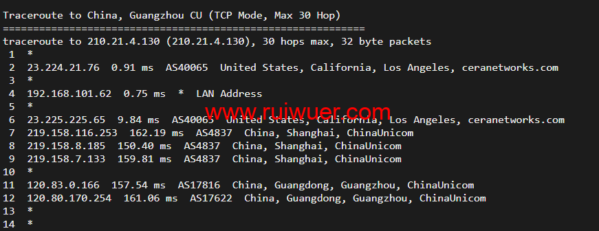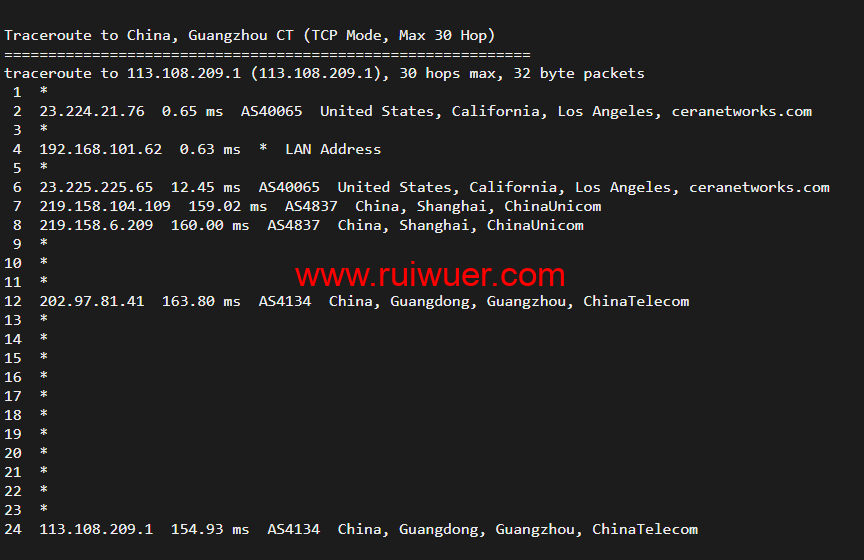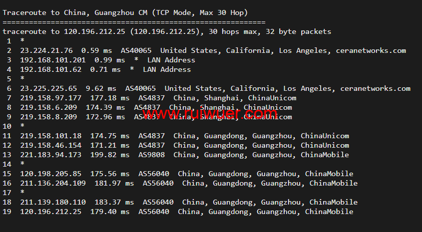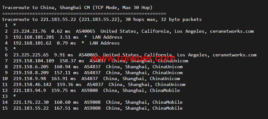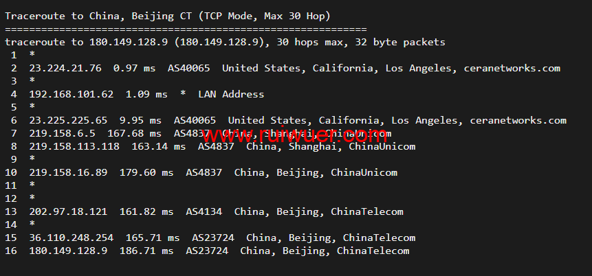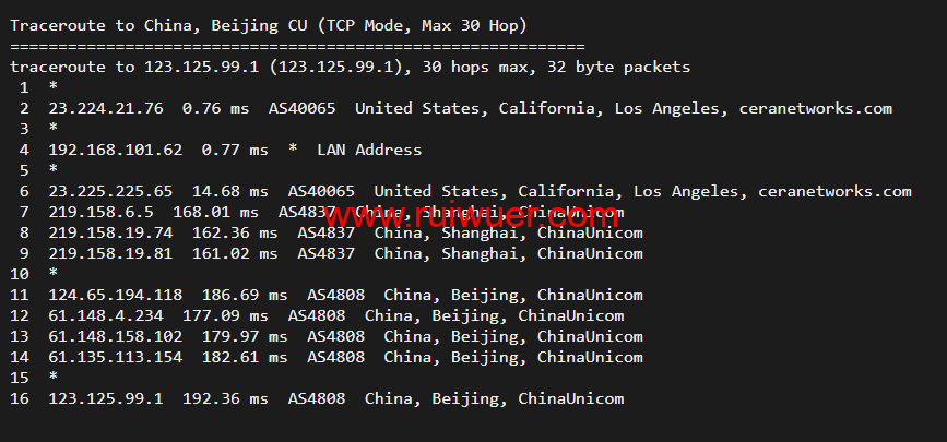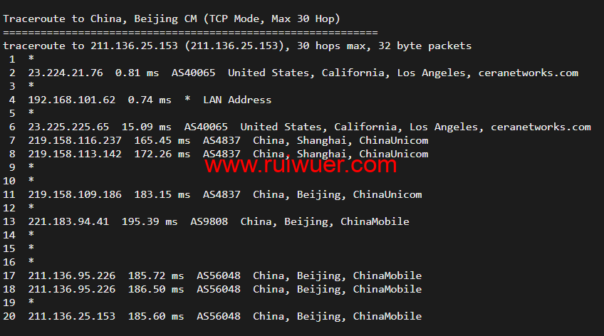回程,到国内移动,走联通as4837回国