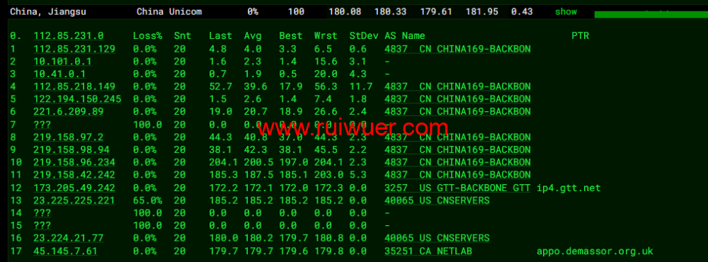 回程,到国内联通,走联通as4837回国