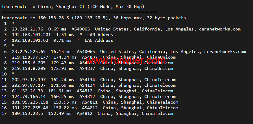 cera线路,去程电信163,回程联通【大陆不做宽带速率保证】。默认普通2G防御,小攻击基本秒解,大攻击黑洞1小时左右。美国CERA稳定大带宽