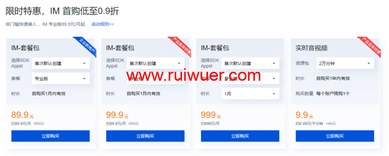 低门槛快速接入 ,IM 专业版89.9元/月起