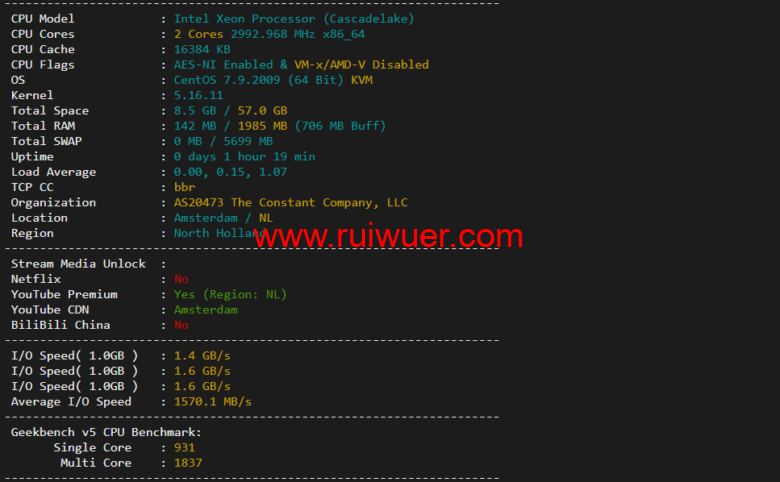 本文对Vultr荷兰阿姆斯特丹机房云服务器做一下测评,了解一下机器性能、下载速度、速度延迟、路由丢包、性能测评、流媒体解锁等
