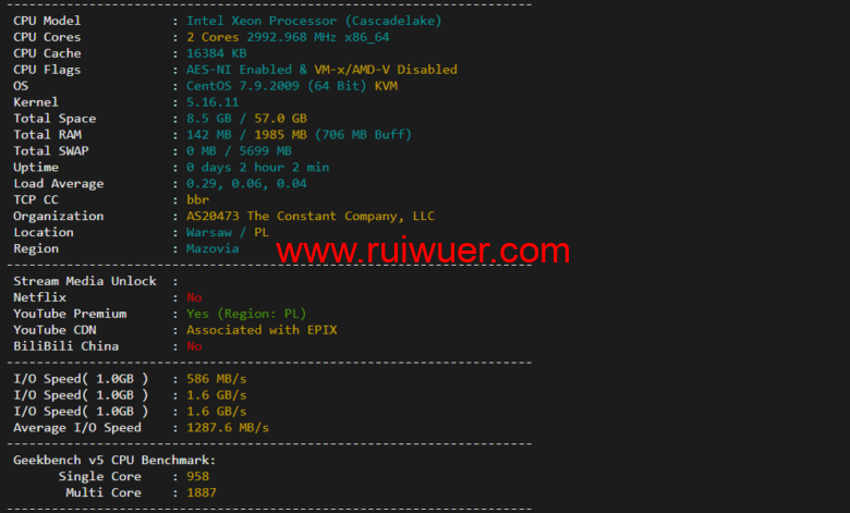 本文对Vultr波兰华沙机房云服务器做一下测评,了解一下机器性能、下载速度、速度延迟、路由丢包、性能测评、流媒体解锁等