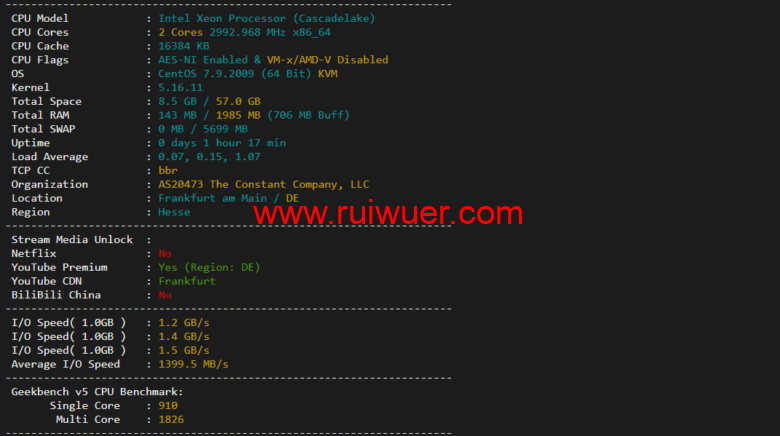 本文对Vultr德国法兰克福机房云服务器做一下测评,了解一下机器性能、下载速度、速度延迟、路由丢包、性能测评、流媒体解锁等