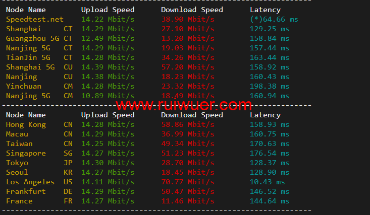 speedtest.net国内国外上行下行测试