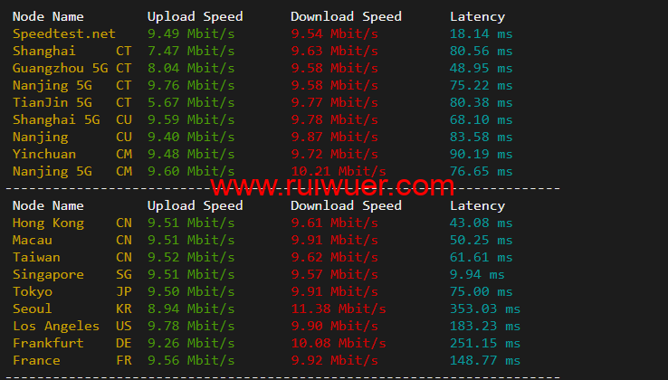 speedtest.net国内国外上行下行测试