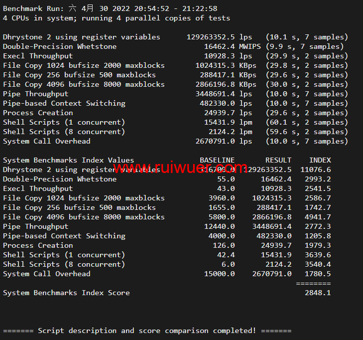 Unix bench Mark跑分