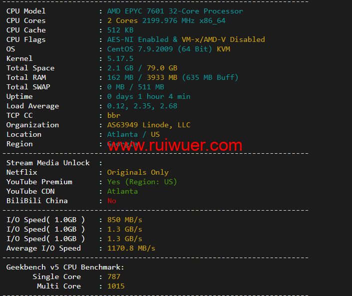 因为AMD出色的性能表现,目前linode多数机房的CPU都换成了AMD EPYC 7601,此外linode官宣支持PayPal和Google Pay付款方式,本文针对Linode的美国亚特兰大机房做一个简单测评,方便大家购买的时候参考。