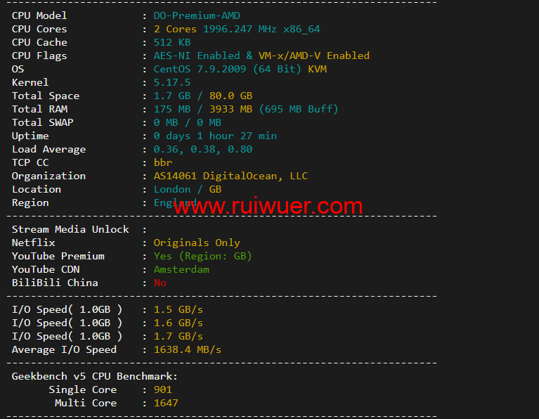 本文针对digitalocean英国伦敦机房做一个简单测评,主要针对机器性能,流媒体解锁,tiktok解锁,线路丢包等,以便大家购买的时候可以参考