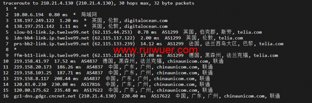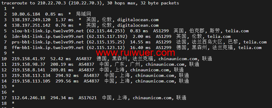 回程,到国内联通