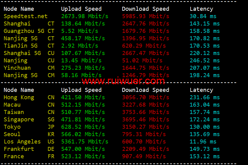 speedtest.net国内国外上行下行测试,国内上新最高跑45MB,下行最高跑2667MB