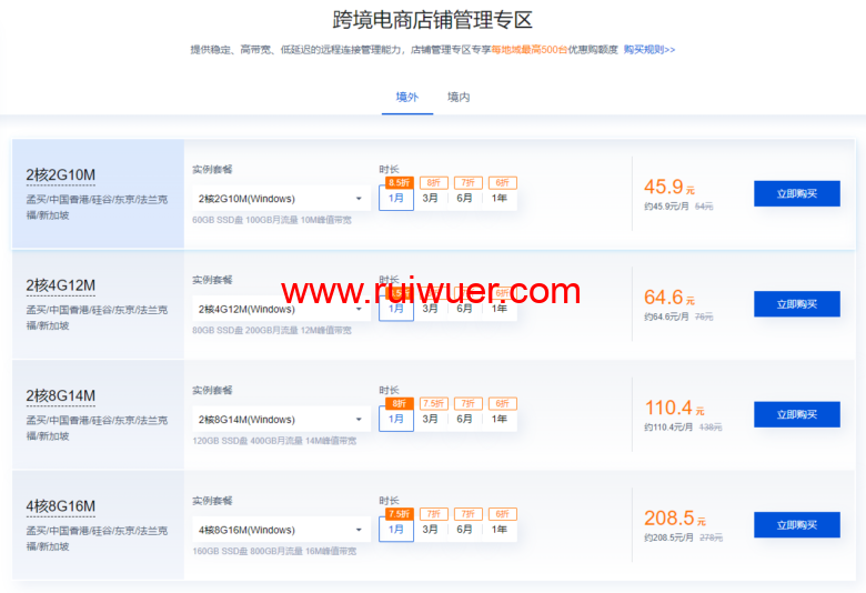 提供稳定、高带宽、低延迟的远程连接管理能力,店铺管理专区专享每地域最高500台优惠购买额度。