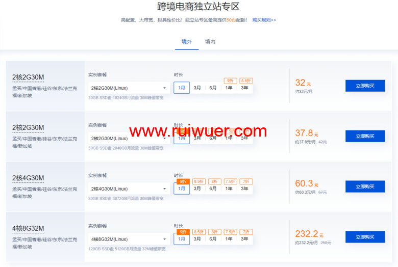 高配置、大带宽、极具性价比!独立站专区最高提供50台配额。