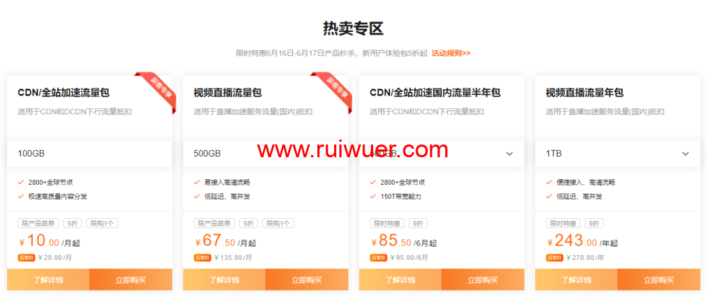阿里云CDN怎么样,阿里云CDN&视频云6月特惠,边缘云产品全线资源包7.5折起,新用户体验包低至5折,新客户体验包低至0.09元/GB,资源包8.5折起,有需要的可以围观。