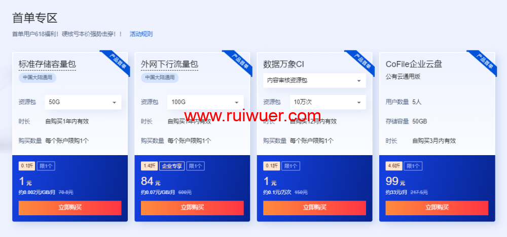 腾讯云存储怎么样,腾讯云存储618专场特惠,高扩展、高可用、高安全、低成本,活动不打烊,超值优惠等你享,标准存储50G容量包低至6.37元/年。企业完成首购且首购金额满600元, 送30元京东卡,同一实名认证主体、同一手机号限领1次,限量3000份!全场2折以上新购订单满额,返代金券,有需要的可以围观。