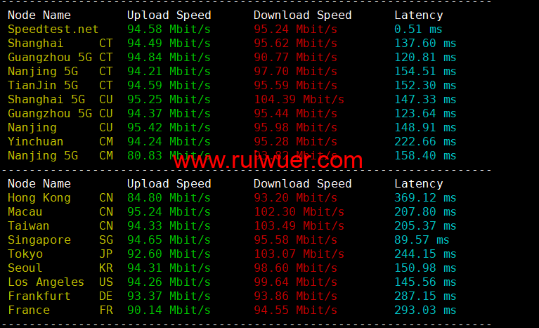 Speedtest.net国内国外上行下行测试: