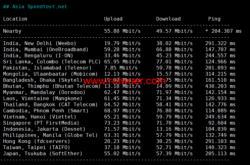 Speedtest亚洲地区节点测试: