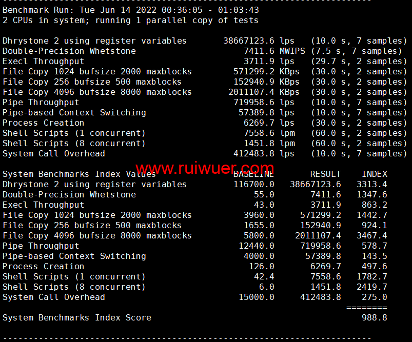 Unix bench Mark性能跑分测试: