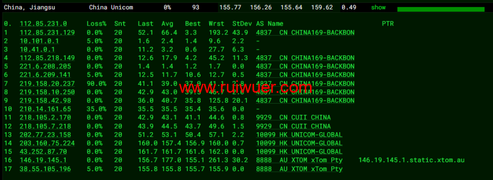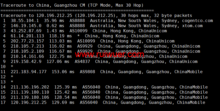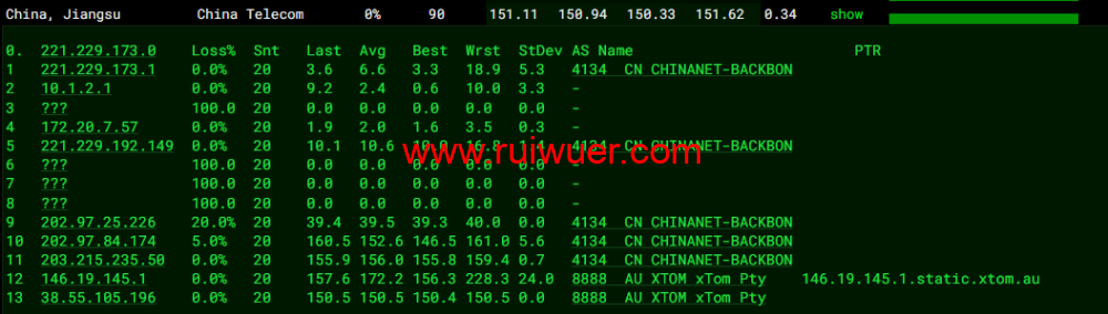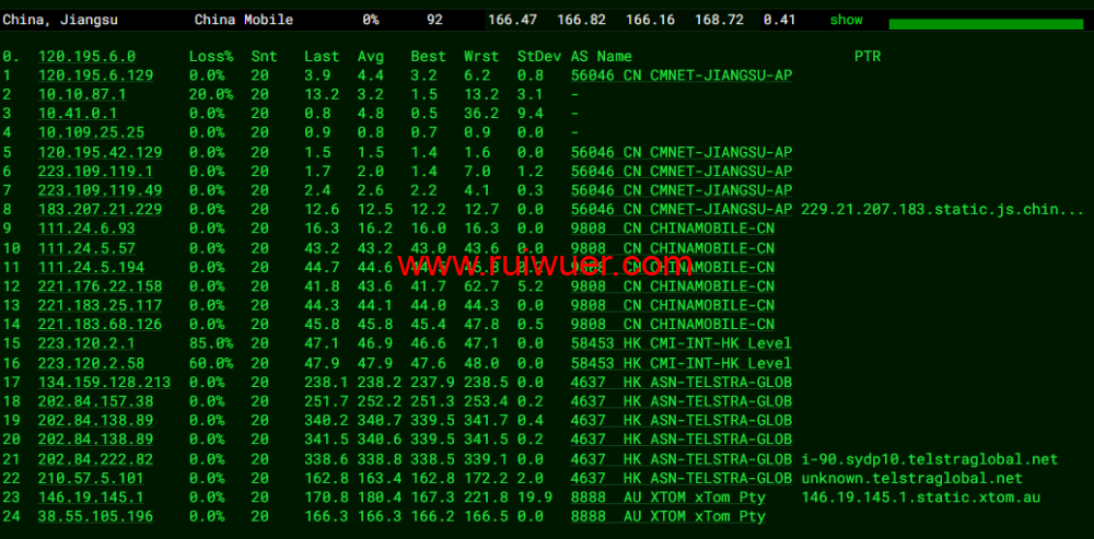 全球丢包测试: