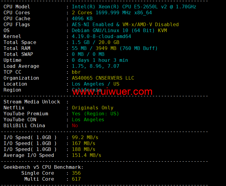 本文为大家带来蓝米云美国机房cera云服务器的测评,方便大家购买参考。
