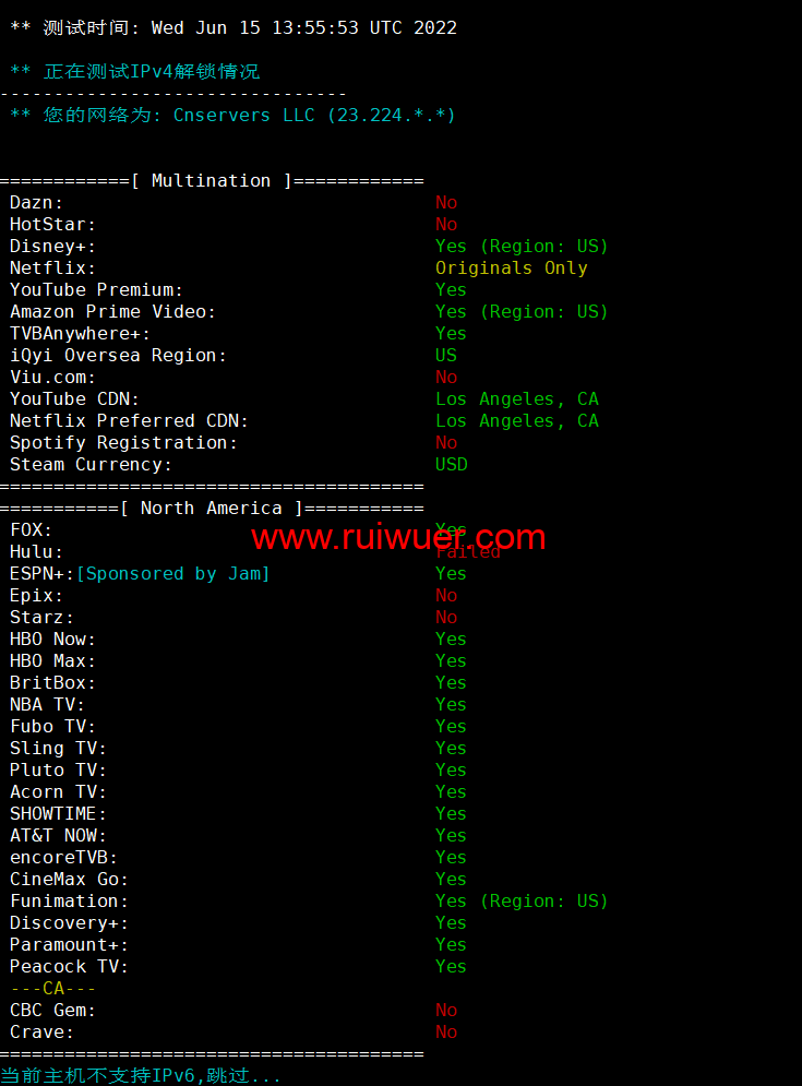 流媒体解锁测试: