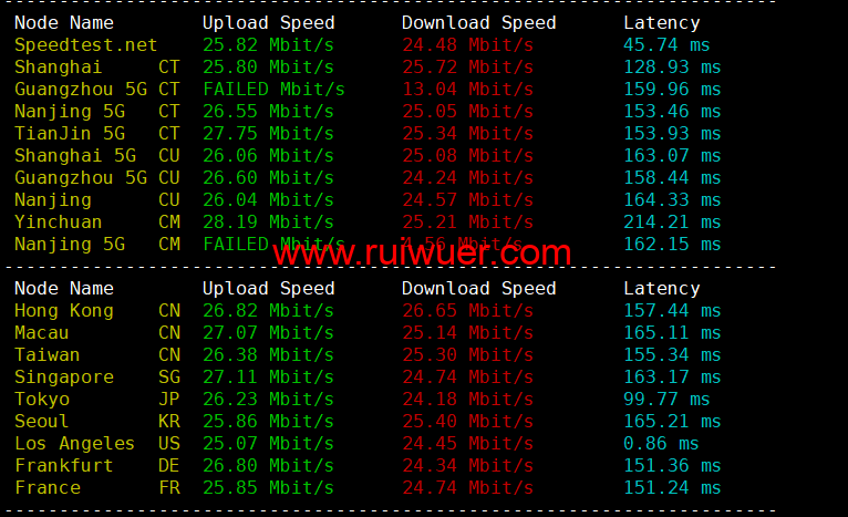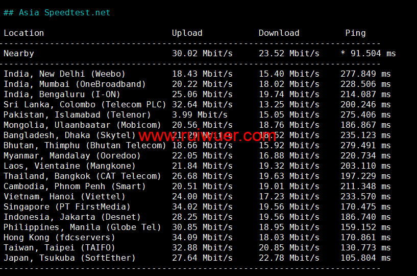Speedtest亚洲地区节点测试: