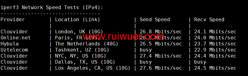 Iperf3欧美地区的节点的测试: