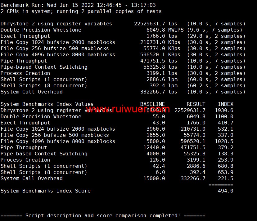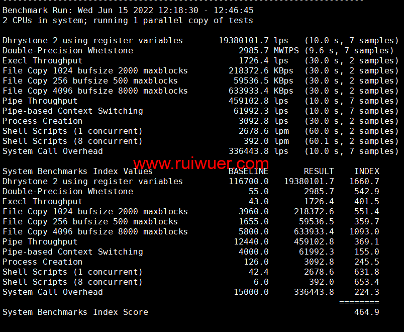 Unix bench Mark性能跑分测试: