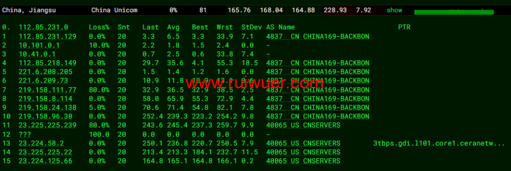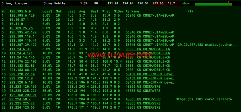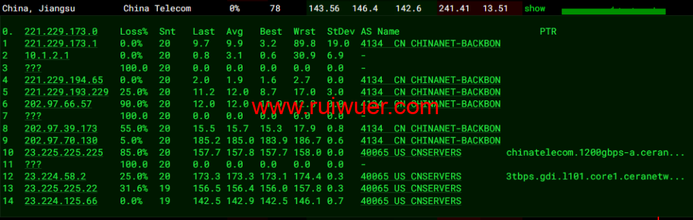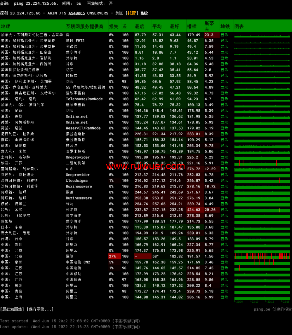全球丢包测试:
